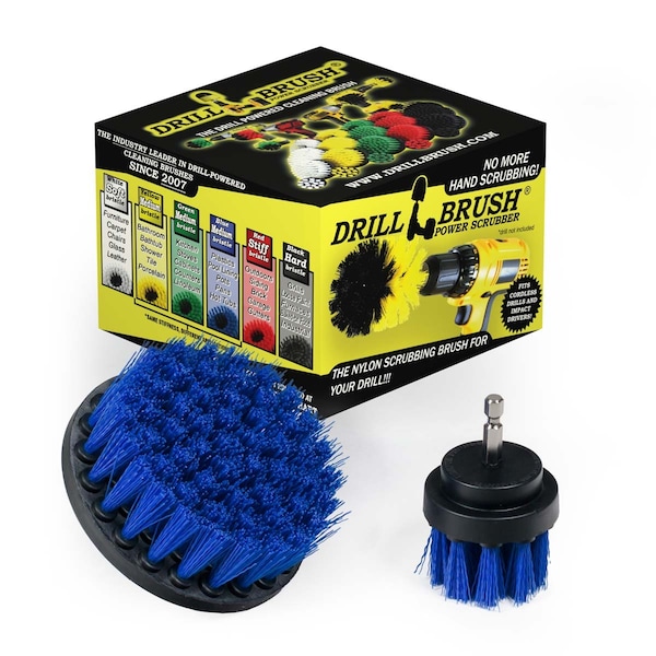 Duo brush kit features a 4-inch diameter flat brush for fast large area scrubbing and a 2-inch diameter small round brush for access to narrow or tight spots. Both brushes are Medium stiffness Blue drill-driven brushes. Drillbrush was established in 2007, we have been designing and innovating brushes based on feedback and demand from our valued customers. Our brushes are professional quality and have been tested and approved by commercial cleaners, marinas, detail shops, and others industry ''hands on, daily user'' reviewers to be the absolute best solution for a wide variety of cleaning and scrubbing tasks. Always look for the ''Drillbrush Power Scrubber'' logo to insure you are buying an authentic Drillbrush from the leader in drill powered cleaning brushes. Drill NOT included.