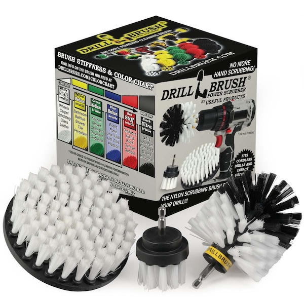 Three piece brush set includes three different size and shape auto wash and detailing brushes. The white brushes have soft bristles for scratch free cleaning and scrubbing. All feature quarter inch quick change attachment for fast change out of components. Clean Aluminum, magnesium, chrome, clear coated, and painted rims and wheels for cars, trucks, and motorcycles. Use the power of your cordless drill to clean and scrub like never before.