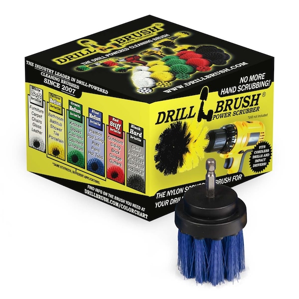 This Drillbrush attachment is made of durable high quality nylon bristles and is great for scrubbing and cleaning plastics, hot tubs, boat seats, boat carpets, and other boat cleaning applications. This brush is great for getting into tight corners and crevices that larger brushes may clean less effectively. The smaller diameter of the round 2 inch diameter scrub brush allows access to tight and hard to reach areas. The increased 1.5 inch bristle length of this brush allows the user to clean more narrow crevices or openings then the normal bristle length brushes. Cordless Drill Not Included