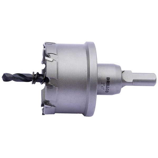 Drillco's line of carbide tipped hole cutters are ideal for drilling large diameter holes in both ferrous and non-ferrous materials. The 9500CT is ideal for thinner material up to 3/16" thick such as sheet metal, steel, aluminum, copper, plastics, cast iron, and the difficult to machine stainless steel. Drillco's TCT Hole Cutters are an excellent performing, cost effective alternative to bi-metal hole saws. Their portability makes them ideal for a wide range of professionals including electricians, plumbers, HVAC technicians, mechanics, general contractors, installers, DIY'ers and more. Diameters 9/16" to 2.5/8" have a 3/8" shank; 2.11/16" to 4" have a 1/2" shank. Tungsten carbide teeth are made in Germany using premium grade carbide. These ultra-hard teeth increase performance and tool life.