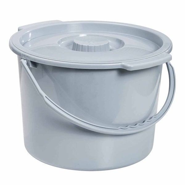 For use with Drive commodes 11114KD, 11125PSKD, 11130, 11135, 11105N, 11117N With metal handle and cover Durable material resists grime and stains for easy cleaning