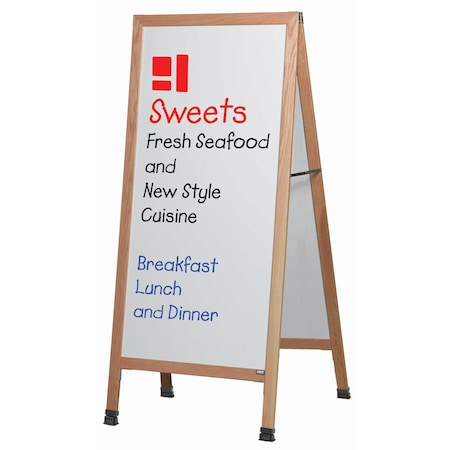 Extra Large A-Frame Sidewalk Board, White Porcelain Markerboard Solid Red Oak Frame, 68''Hx30''W