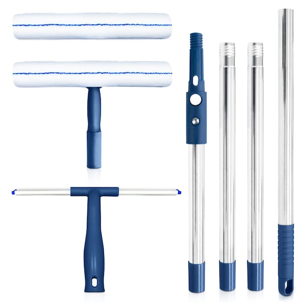 4-Section Pole; Silicone Scraper; (2) Microfiber Scrubber Sleeves