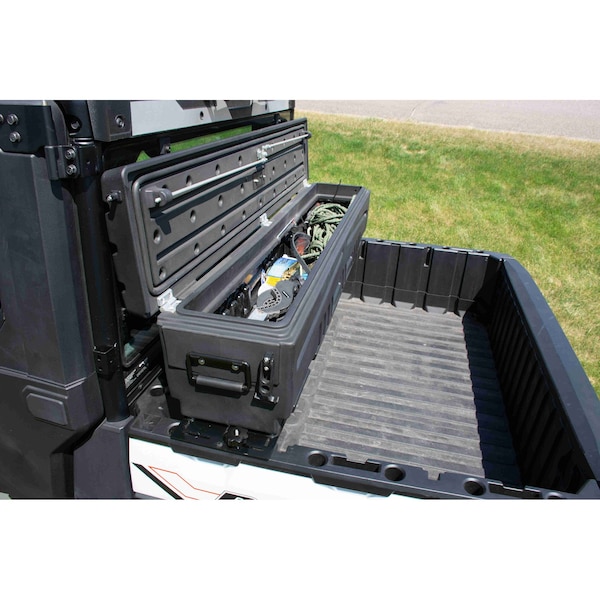 The Newly Designed DU-HA All-Terrain is the DU-HA storage device made for most UTVs and ATVs. It mounts atop most UTVs and ATVs beds to store and protect your gear, tools, and firearms. Yes, there is a DU-HA storage device for your UTV and ATV too! The DU-HA All-Terrain is the DU-HA answer to a dead space storage place on your UTV and ATV. This heavy-duty container mounts above the front or rear of the bed on your UTV and ATV so it is easily accessible from either side yet does not take up any in.floor space in. on your UTV and ATV bed. Keep all your gear, tools, and even your firearms in the All-Terrain. A Top Lock secures the newly designed lid to keep out moisture and dust. The All-Terrain provides a roomy 3.2 cubic feet of storage and it will easily hold two shotguns or non-scoped rifles which sit upright on the included dividers. Like all DU-HA storage devices, the All-Terrain is made of roto-molded polyethylene so it's ultra-tough and made to withstand the rigors of the outdoors.
