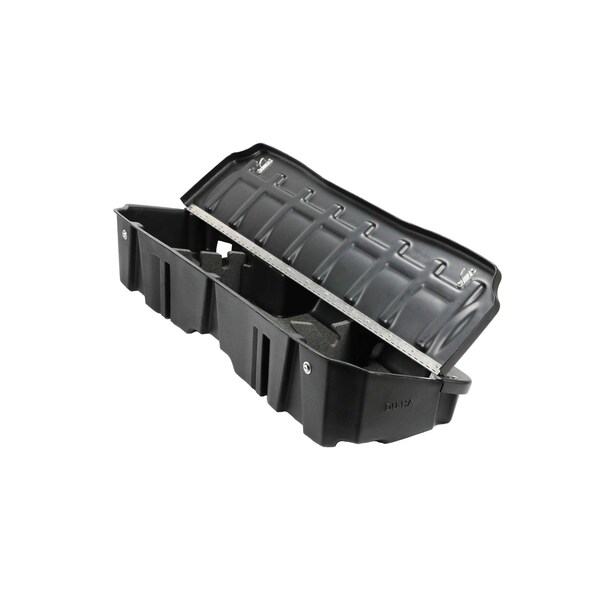 Fits 2019-2024 Chevrolet/GMC Silverado/Sierra Light Duty Crew Cab and 2020-2024 Chevrolet/GMC Silverado/Sierra Heavy Duty Crew Cab New Body Style DU-HA Lockable Storage Systems - Whether you're a contractor, sportsman or simply someone looking for a great way to organize your pickup truck and keep your gear safe and out of sight, the DU-HA Lockbox is perfect for you. The Lockbox allows you to store your gear, guns, power tools, tow ropes, tie down straps, first aid kit, tackle, bungee straps, hats, boots, gloves, chains, jumper cables, and so much more safely and securely under the back seat of your truck. With it's keyed locking mechanism, you can keep your gear safe and hidden out of sight. The Lockbox keyed lock includes 2 keys that open both locks. The Lockbox includes a 2-piece gun rack/organizer, so you can safely store your guns. The organizers/gun racks are easily removable so you can store larger items if you'd like. The Lockbox carries 2-4 guns depending on the model of your truck. The Lockbox installs quickly and will blend in seamlessly with your truck's interior, having a factory feel. The Lockbox is constructed from heavy duty polyethylene. #10410 Black