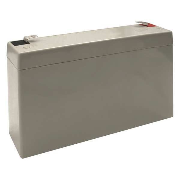 Battery, Battery Chemistry Sealed Lead Acid, Battery Capacity 7.2 Ah, Compatible with Series AS, CV3, CVEC, CVT, EZ-2, LM, N4X, T-Grid, Compatible with Product Type Emergency Lights, Exit Signs, Recharge Time 168 hr, Voltage 6 V, Standards UL 1989, Faston Terminal Type, 1/4 in Faston Spade Terminal Connection, Rated Life 3 yr, Black Housing Color, Compatible Grainger Part Number 4PG68
