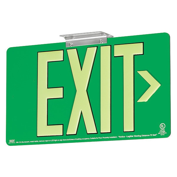 Photoluminescent Single-Face Aluminum Exit, Green, 75FT View Distance (Discontinued)