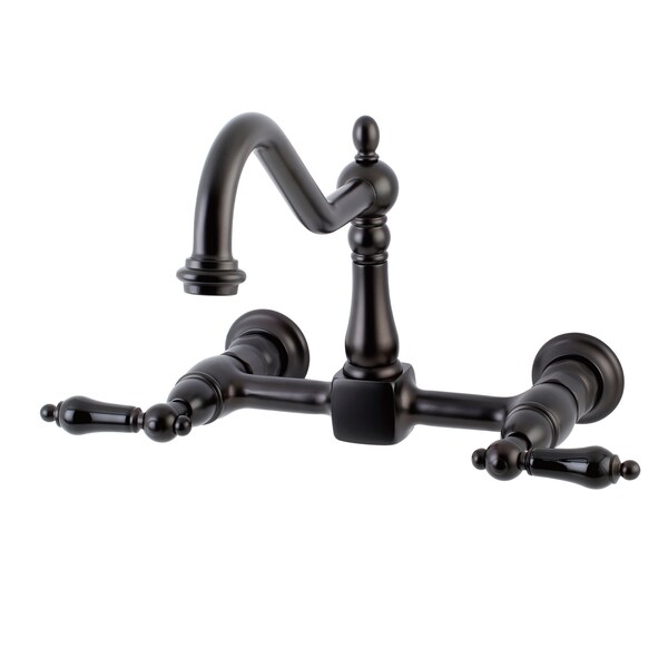 Crafted in commendations to English nobility, the exemplary design of this faucet manifests regality and elegance with its black porcelain handles. Because of the horizontal pop that it gives, it is more of a centerpiece, perfect for planning a design around. The oil rubbed bronze finish will also provide a long lasting and warm touch to your kitchen ensemble. Allow the brass construction and swivel abilities to provide a sturdy and reliant fixture as it maximizes your counter space.