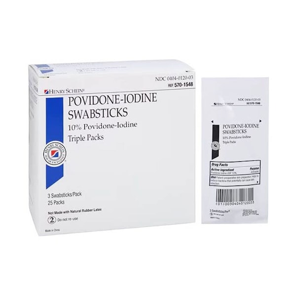 Povidone-Iodine Swabstick - 3', 3/Pouch, 25/Box. NDC products are not always manufacturer specific. Actual product appearance may differ from website image