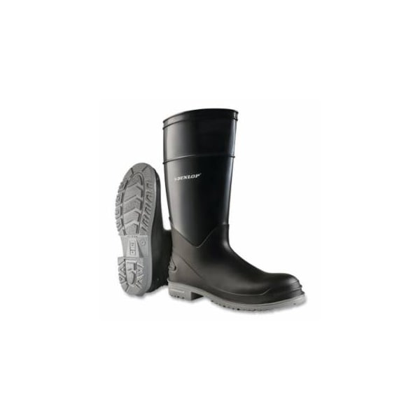 PolyGoliath Rubber Boots, Plain Toe, Men's 8, 16 in Boot, Polyblend/PVC, Black/Gray