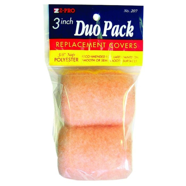2-pack of standard diameter roller covers. Z-Pro Standard Diameter Trim Roller Cover, 3/8 Inch Nap, 3 Inch L, Polyester Knit Fabric