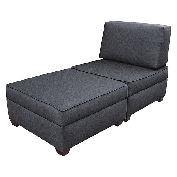 Chaise Lounge, Overall Width 72 in, Overall Depth 36 in, Overall Height 36 in, Upholstery Color Blue, Frame Color Black, Number of Compartments 2, Weight Capacity 275 lb, Assembled, Seat Height 18 in, Ottoman Dimensions 18 in H x 72 in W x 36 in D, Compartment Width 35 in, Compartment Depth 8 1/2 in, Compartment Height 35 in, Upholstery Material Polypropylene, Frame Material Wood, Leg Material Wood, Leg Color Brown, Leg Height 3 in, Leg Glides Included Leg Glides Included