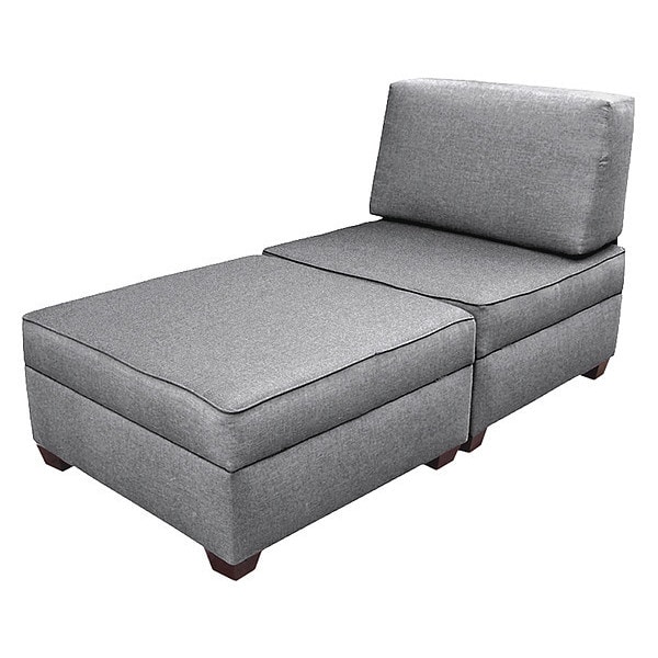 Chaise Lounge, Overall Width 72 in, Overall Depth 36 in, Overall Height 36 in, Upholstery Color Gray, Frame Color Black, Number of Compartments 2, Weight Capacity 275 lb, Assembled, Seat Height 18 in, Ottoman Dimensions 18 in H x 72 in W x 36 in D, Compartment Width 35 in, Compartment Depth 8 1/2 in, Compartment Height 35 in, Upholstery Material Polypropylene, Frame Material Wood, Leg Material Wood, Leg Color Brown, Leg Height 3 in, Leg Glides Included Leg Glides Included