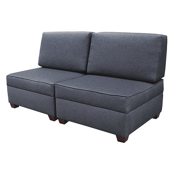 Sleeper Sofa, Overall Width 72 in, Overall Depth 36 in, Overall Height 36 in, Upholstery Color Blue, Frame Color Black, Number of Compartments 2, Weight Capacity 275 lb, Assembled, Seat Height 18 in, Ottoman Dimensions 18 in H x 72 in W x 36 in D, Compartment Width 35 in, Compartment Depth 8 1/2 in, Compartment Height 35 in, Upholstery Material Polypropylene, Frame Material Wood, Leg Material Wood, Leg Color Brown, Leg Height 3 in, Leg Glides Included Leg Glides Included