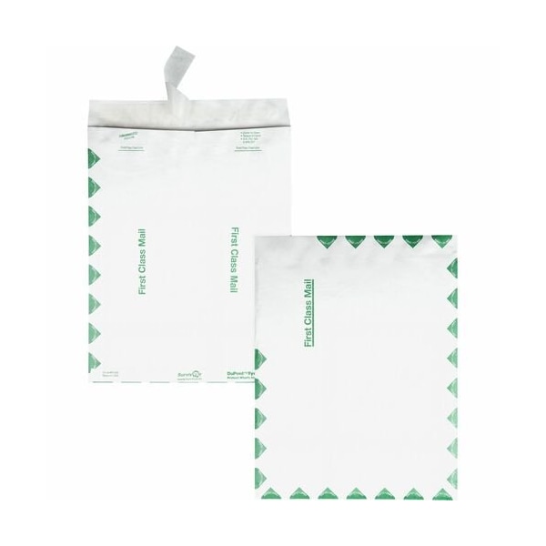 13in Long x 10in Wide Self Seal Tyvek Flat Catalog Envelopes with Printed First Class, 100PK