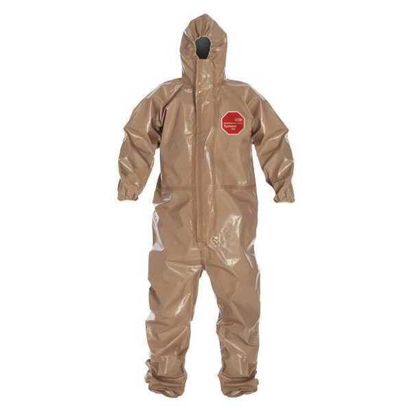 Hooded Chemical Resistant Coveralls, Ankle Closure Elastic, Anti-Static No, Attached Glove Style Inner/Outer, Attached Hood Yes, Breathable Back Style Not Applicable, Chest Size - Maximum 44 1/4 in, Chest Size - Minimum 44 3/4 in, Closure Features Zipper, Closure Type Zipper, Color Tan, Coverall Style Hooded Coverall, Cuff Style Elastic, EPA Protection Level B, Features Waste Cleanup, Industrial Hazmat Teams, Utilities and Domestic Preparedness, Flame Resistance and Retardance Ratings NFPA 1992