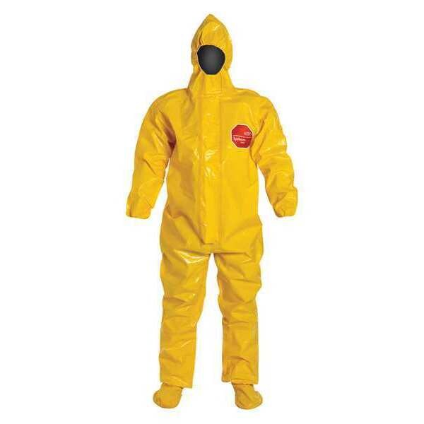 Hooded Chemical Resistant Coveralls, Ankle Closure Elastic, Anti-Static No, Attached Hood Yes, Breathable Back Style Not Applicable, Chest Size - Maximum 64 3/4 in, Chest Size - Minimum 44 3/4 in, Closure Features Zipper, Closure Type Zipper, Collar Style Plain, Color Yellow, Coverall Style Hooded Coverall, Cuff Style Elastic, EPA Protection Level B, Features Multi-Layer Composite Barrier Laminated to a Strong, Non-Woven Substrate, Gas Tight No