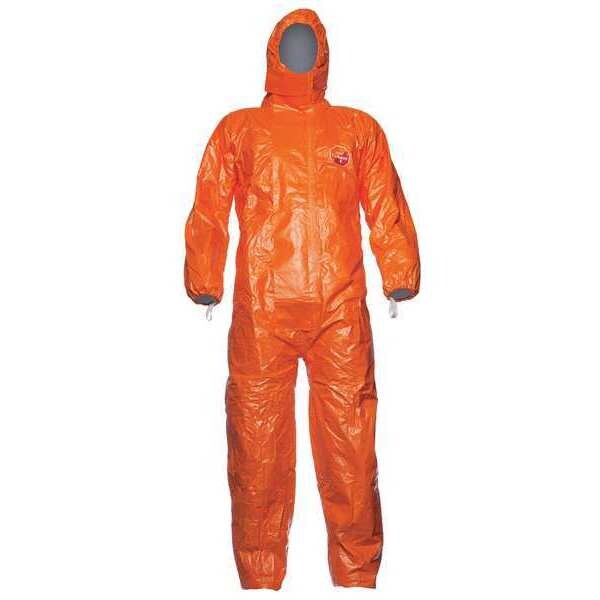 Hooded Coveralls, Ankle Closure Elastic, Anti-Static No, Attached Hood Yes, Breathable Back Style Not Applicable, Chest Size - Maximum 39 1/4 in, Chest Size - Minimum 44 3/4 in, Closure Type Zipper, Color Orange, Coverall Style Hooded Coverall, Cuff Style Elastic, EPA Protection Level B, Gas Tight No, Hazard Type Hazardous Dry Particulates, Hazardous Liquids, Hazardous Powders, Height - Maximum 69 in, Height - Minimum 56 in, High-Visibility No, Hood Style Respirator Fit, Includes Boot Covers No