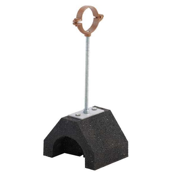 Copper Tube Support Block, Base Material Rubber, Base Size 4.8 in L x 6 in W, For Maximum Outside Diameter 2 1/8 in, For Maximum Pipe Size 2 in, Load Capacity 50 lb, Maximum Height Adjustment 12 in, Minimum Height Adjustment 10 1/2 in, Mount Type Placed On Surface, May Be Glued or Anchored for Additional Support, Overall Height 12.03 in, Overall Length 4.8 in, Pipe Support Type Support Block with Split Ring Clamp, Roller Diameter Not Applicable, Roller Length Not Applicable