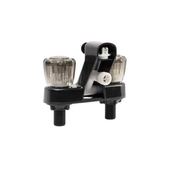 Used For Bathtub; Single Piece 4 Inch Wall Mount With Pull-Up Tub/ Shower Diverter; Arc Spout; 2 Smoked Acrylic Knob Handle; Black; Washerless Cartridge Valve