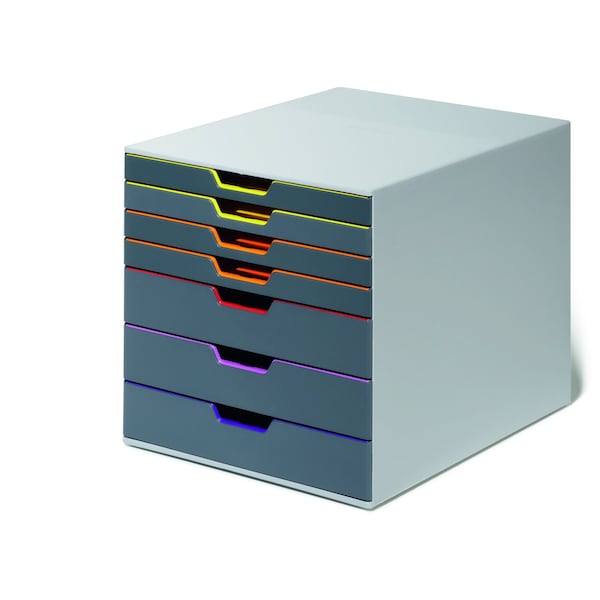 Desk Storage, 7 Drawer Box, Gray/Multi