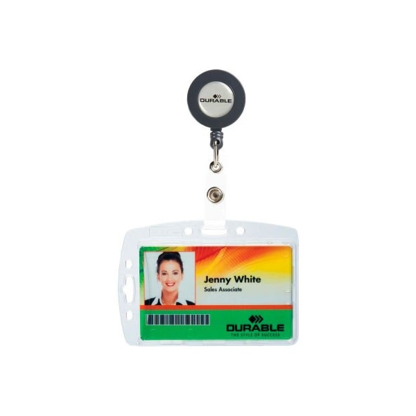 Durable Shell-Style ID Card Holder, Vertical/Horizontal, With Reel, Clear, 10/Pack