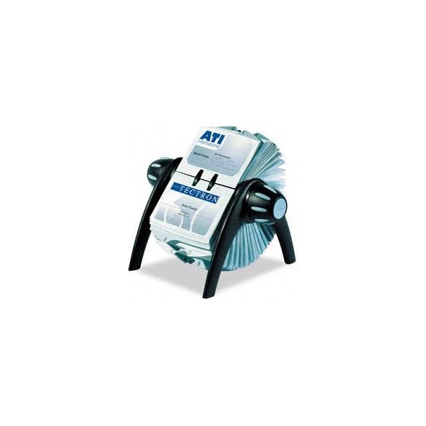 durable visifix flip business card rotary file sleek black and silver looking rotary business card file with up-to-date features like large ergonomic knobs with rubber inserts for turning ease. Rotation mechanism holds cards in place for viewing. Stores 400 business cards in 200 double-sided clear sleeves. 25 (a-z) dividers included. Rubber pads on legs. Card holder type: open rotary business card file; card capacity: 400; for card size: n\a; color(s): black. refills available. Please see global model b48630 this product arrives to most customers in 2-3 business days.