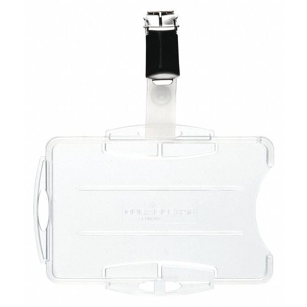 Badge Holder, Dual, Number Series Blank, Material Polystyrene, Color Translucent, Length 2 3/4 in, Width 3 9/16 in, Height 4 9/16 in, Legend No Legend, For Use With Badges, ID Cards, Includes Strap Clip, Material Thickness 1/4 in, Package Quantity 25