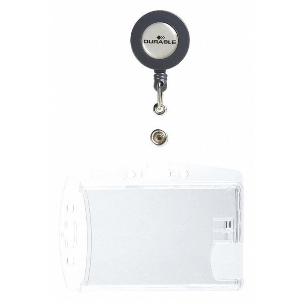 Badge Holder, Shell Style, Number Series Blank, Material Polystyrene, Color Translucent, Length 2 3/4 in, Width 3 9/16 in, Height 5 13/16 in, Retracted Length 2 3/4 in, Extended Length 23 in, Legend No Legend, For Use With Badges, ID Cards, Includes Lanyard, Material Thickness 5/16 ft, Package Quantity 10