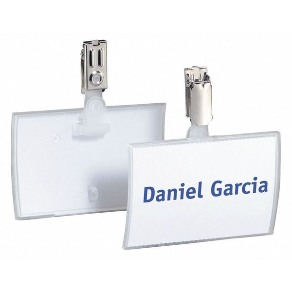 Name Badges, Name Badge Type Name Badge, Legend Not Applicable, Color Transparent, Height 2 1/4 in, Length 3 11/16 in, Width 1/8 in, Material Polypropylene, Package Quantity 25