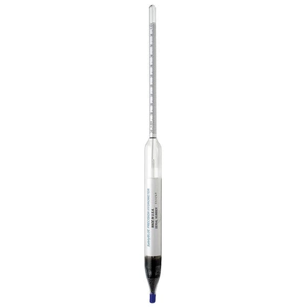 Combined Form Hydrometer, Scale Specific Gravity, Scale Divisions 0.002, Range 1.000/1.220, Length 381mm, Temp. Range 0 to 150 Degrees F, Application Specific Gravity, Standards NIST