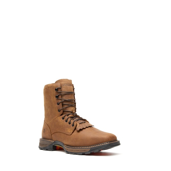 This is the men's 8" Russet Waterproof Steel Toe Durango Maverick XP Lacer. This style is full-grain leather with a soft mesh lining and Durango waterproof membrane bootie to keep your feet dry all day long. It has a removable brush guard kiltie and the Durango X-Treme Comfort footbed with Memory Foam for all day comfort and support. Inside it has a fiberglass shank for lightweight stability, dual-density midsole with firmer shock absorbing heel for added stability and a soft shock absorbing forepart for ultimate flexibility and comfort. The rolled shank area and anti-torsion ridged external shank provides added lateral stability and the outsole is a multi-durometer rubber with high abrasion outer lugs for high impact durability and softer durometer mid lugs for added flexibility and increased slip and oil resistance. It has a double row sole stich for added durability and a 1 1⁄2" rocker heel. Break Ground in this men's 8" Steel Toe Waterproof Durango Maverick XP Lacer. Get a pair today.