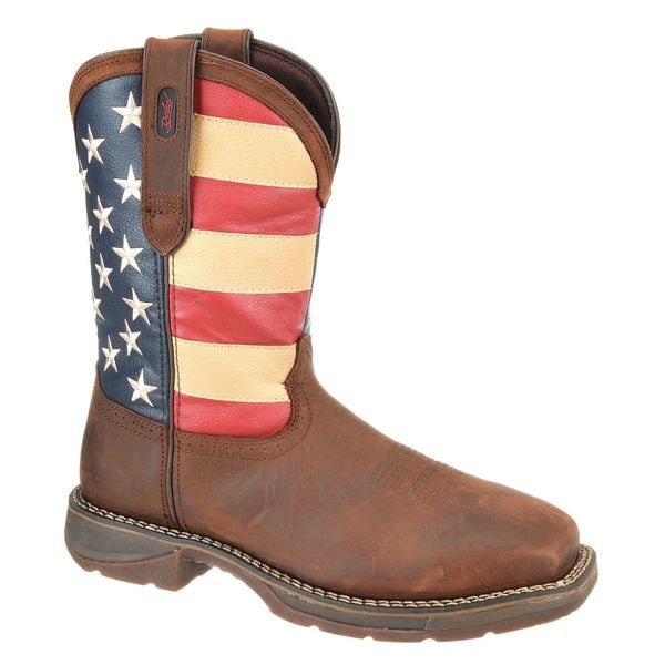 Men's Western Boot, 9 M, Steel Toe, 11 in H, American Flag/Dark Brown, DB020