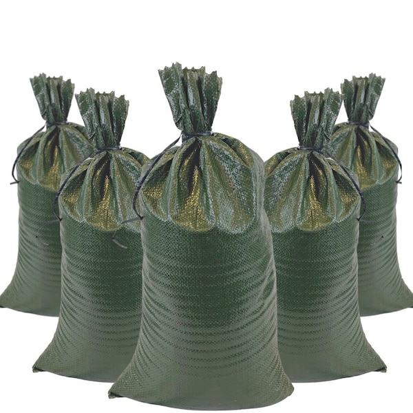 14 in. x 26 in. Empty Sand Bags with Tie Strings, Green, 1000PK