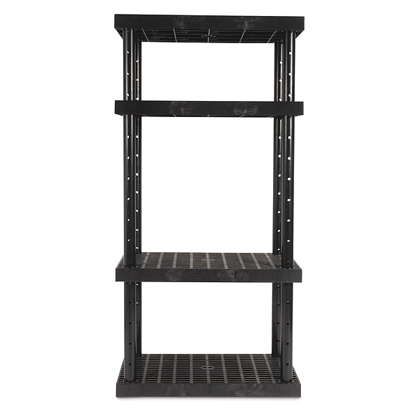 Plastic Shelving, Adjustability Adjustable, Frame Material Plastic, Overall Depth 24 in, Overall Height 72 in, Overall Width 36 in, Shelf Adjustment Increments 4 in, Shelf Style Solid, Shelving Material Plastic, Whole Unit Load Capacity 1,320 lb, Number of Shelves 4