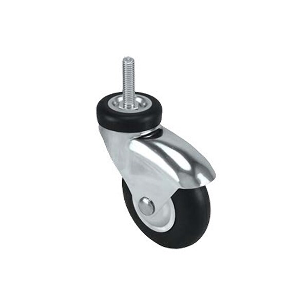 Caster; 3x1 Swivel Fork (Chrome); 3x1 Neoprene Rubber Wheel; Ball Bearing; 3/8-16x1-1/2" Threaded Stem; Rubber Dust Cover