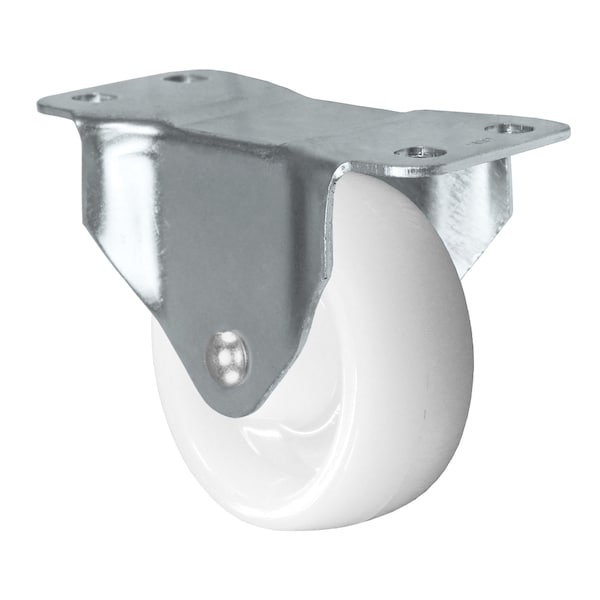 Caster; 3x1.25" Rigid Fork; 3x1.25"Polyolefin Wheel (Donut, White); 1/2" Plain bore, Steel Spanner Bushing; 2-1/4 x 5-1/8 Top Plate..
