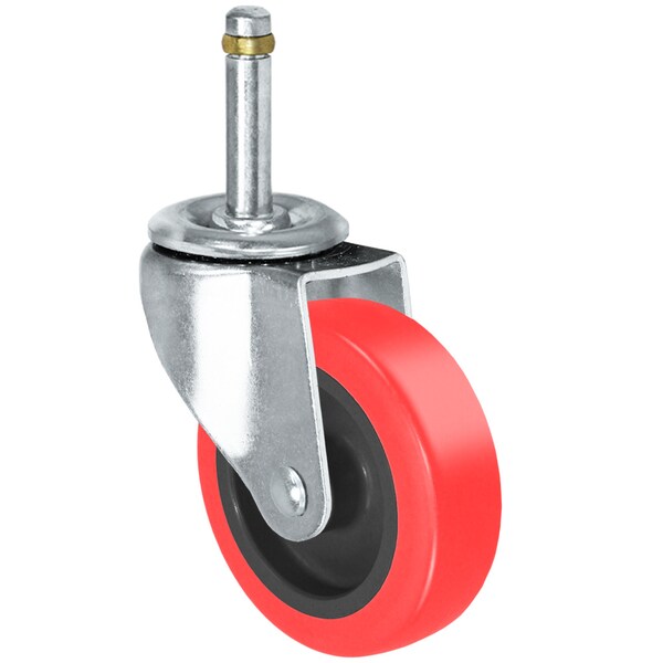 Caster; 5x1 Swivel Fork (Side Lock Brake); 5x1 Polyurethane Wheel (Red/Black); 5/16 Plain Bore; 7/16X2 Grip Ring Stem