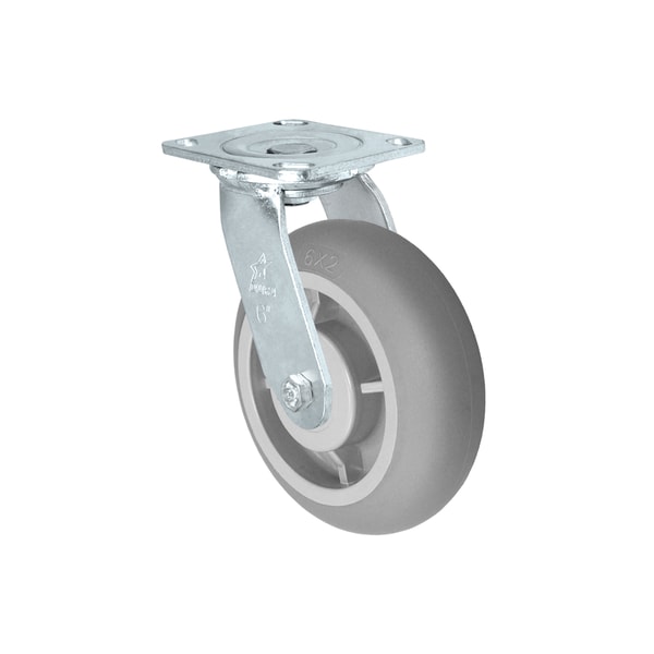 Caster; 6 x 2 swivel fork; 6 x 2 TPR Donut tread (Gray);1/2" Precision Ball Bearings; 4 x 4-1/2 top plate
