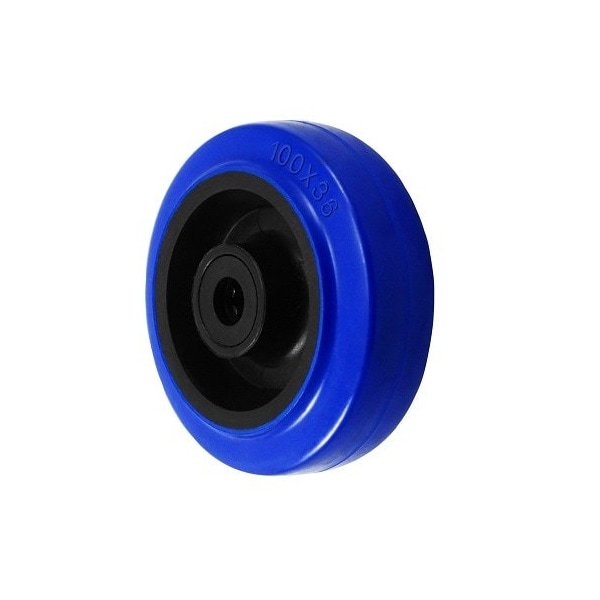 Wheel, 4" X 1.25" X12Mm Elastic Rubber, Glass-Filled Nylon Wheel (Blue,