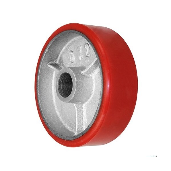 Wheel; 6X2 Polyurethane|Steel (Red|Silver); 1-3/16 Plain Bore