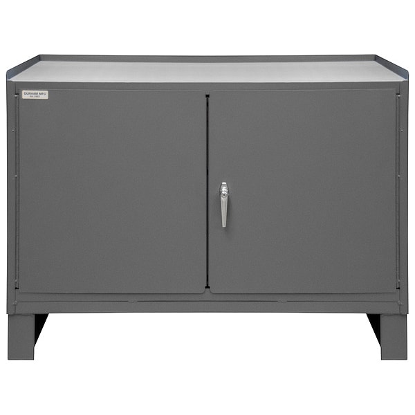 Cabinet Workbench, Top Material Steel, Color Gray, Non-Metal Top Thickness Not Applicable, Number of Doors 2, Number of Drawers 1, Number of Shelves 1, Overall Depth 24 in, Overall Height 37 in, Overall Load Capacity 2,000 lb, Overall Width 48 in, Top Metal Material Gauge 14 ga, Included Components Back Stop, Lower Shelf, Side Stops, Assembly Fully Assembled, Cabinet Interior Depth 24 in, Door Type Standard/Hinged, Frame Material Steel, Frame Material Finish Powder Coated