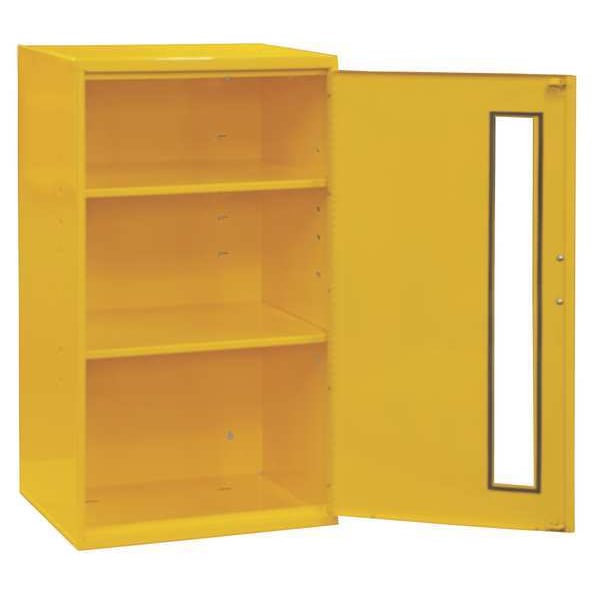 Storage Cabinet, Cabinet Door Type Clearview, Cabinet Color Yellow, Assembled, 20/18 Gauge, Overall Cabinet Height 32-1/4 In., Overall Cabinet Width 19-3/4 In., Overall Cabinet Depth 12-1/4 In., Finish Powder Coated, Number of Shelves 2, 40 lb. Shelf Capacity, Pull Cabinet Handle Style, Cabinet Strength Rating Industrial, Number of Doors 1