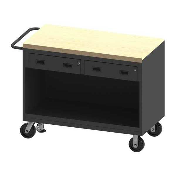 Mobile bench cabinet, maple top, work surface, no doors, 2 drawers