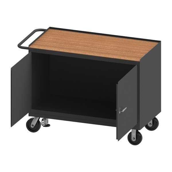 Mobile Cabinet Workbench, Top Material Hardboard, Color Gray, Non-Metal Top Thickness 1/4 in, Number of Doors 2, Number of Drawers 0, Number of Shelves 0, Overall Depth 24 in, Overall Height 37 3/4 in, Overall Load Capacity 3,600 lb, Overall Width 48 in, Top Metal Material Gauge Not Applicable, Included Components Back Stop, Handle on Side, Side Stops, Assembly Fully Assembled, Brake Type Floor Lock, Cabinet Interior Depth 24 in, Caster Mount Type Plate, Caster Type (2) Rigid, (2) Swivel