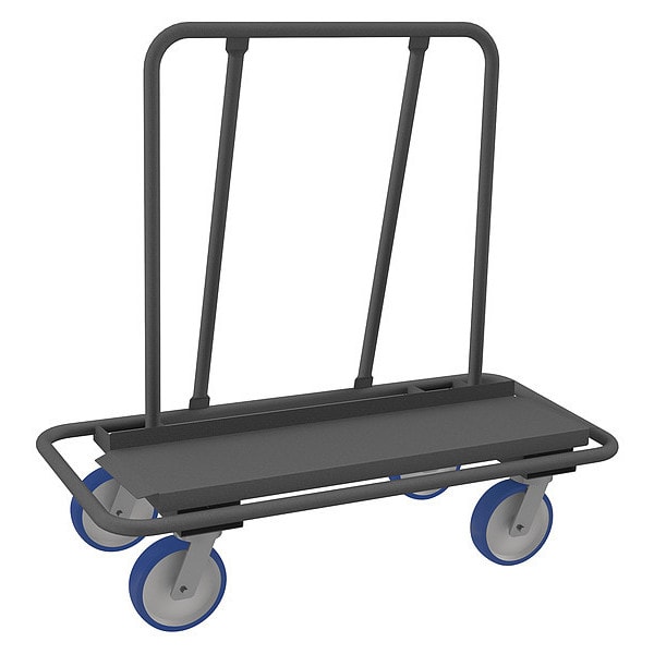 Sloped-Frame Panel Truck, Load Capacity 3,000 lb, Rail Type Fixed, Rail Height 36 1/8 in, Lip Style Flush, Overall Length 47 1/2 in, Overall Width 23 1/2 in, Overall Height 50 in, Deck Construction Solid, Deck Material Steel, Deck Finish/Coating Powder Coated, Deck Gauge 14 ga, Deck Height 13 1/4 in, Deck Length 43 7/8 in