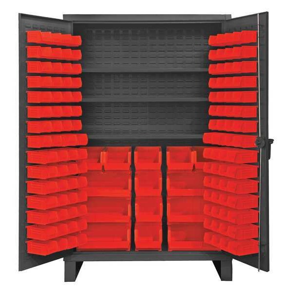 Bin Cabinet, Base Type Legs, Bin Color Red, Bin HxWxD (6) 16 in x 15 in x 7 in, (60) 4 in x 5 in x 3 in, (60) 4 in x 7 in x 3 in, (8) 8 in x 15 in x 7 in, Cabinet Color Gray, Cabinet Storage Components Bins, Shelves, Door Type Flush, Frame Assembled Assembled, Mobility Stationary, Number of Bins 134, Number of Cabinet Bins 14, Number of Door Bins 120, Number of Shelves 4, Overall Depth 24 in, Overall Height 78 in, Overall Width 36 in, Bin Depth 5 in, 7 in, 15 in, Bin Height 3 in, 7 in