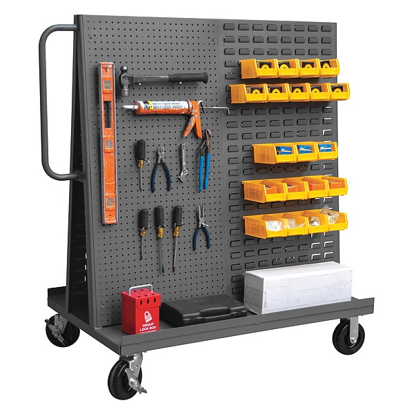 Truck, Caster Wheel Diameter 6 in, Caster Wheel/Tread Material Phenolic, Steel, Powder Coated, Gray, Number of Sides 2, Overall Depth 54 in, Overall Height 57 in, Overall Width 30 in, Whole Unit Load Capacity 2,000 lb, Frame Configuration A-Frame, Mobile A-Frame Louvered/Pegboard Rack