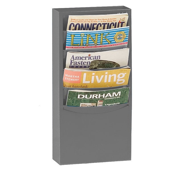 Literature Rack, Product Type Literature Rack, Number of Compartments 5, Includes Label Holders No, Overall Height 20 1/4 in, Overall Depth 4 1/8 in, Overall Width 9 3/4 in, Material Steel, Color Gray, Literature Form Factor Letter, Compatible Manufacturer Part Number Not Applicable, Swivel No, Assembly Assembled, Compatible Grainger Part Number Not Applicable, Compartment Type Pocket, Mountable Yes, Mounting Location Wall
