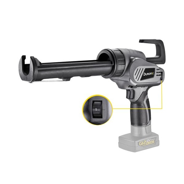 Delivers professional workmanship with a steady stream of filling from cartridge. Choose from 8-Speed Dial for various filling materials & applications. Max 500 lbs pushing force & 130 PSI for all filling materials 10 oz. cartridge. Features 360 degree rotating collar with half-barrel design. G12 Battery Platform: Uses G12 batteries, compatible with all G12 family tools.